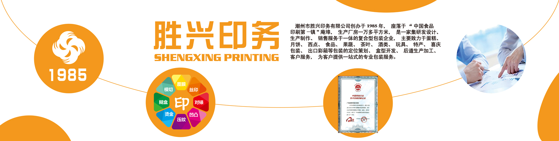 潮州市勝興印務(wù)有限公司創(chuàng)辦于1985年,座落于“中國食品印刷第—鎮(zhèn)”庵埠鎮(zhèn),多年來一直從事包裝印刷行業(yè),擁有德國印刷機多臺及配套,專業(yè)生產(chǎn)蛋糕包裝、月餅包裝、年畫及各種吉祥物品。勝興的成功,有賴于才干卓越、盡心盡力的員工。本廠注重技術(shù)人才隊伍的建設(shè),擁有技術(shù)性強的各類專業(yè)印刷人員。成熟的生產(chǎn)技術(shù)及優(yōu)質(zhì)的服務(wù)使我們得到了良好的聲譽和信任。